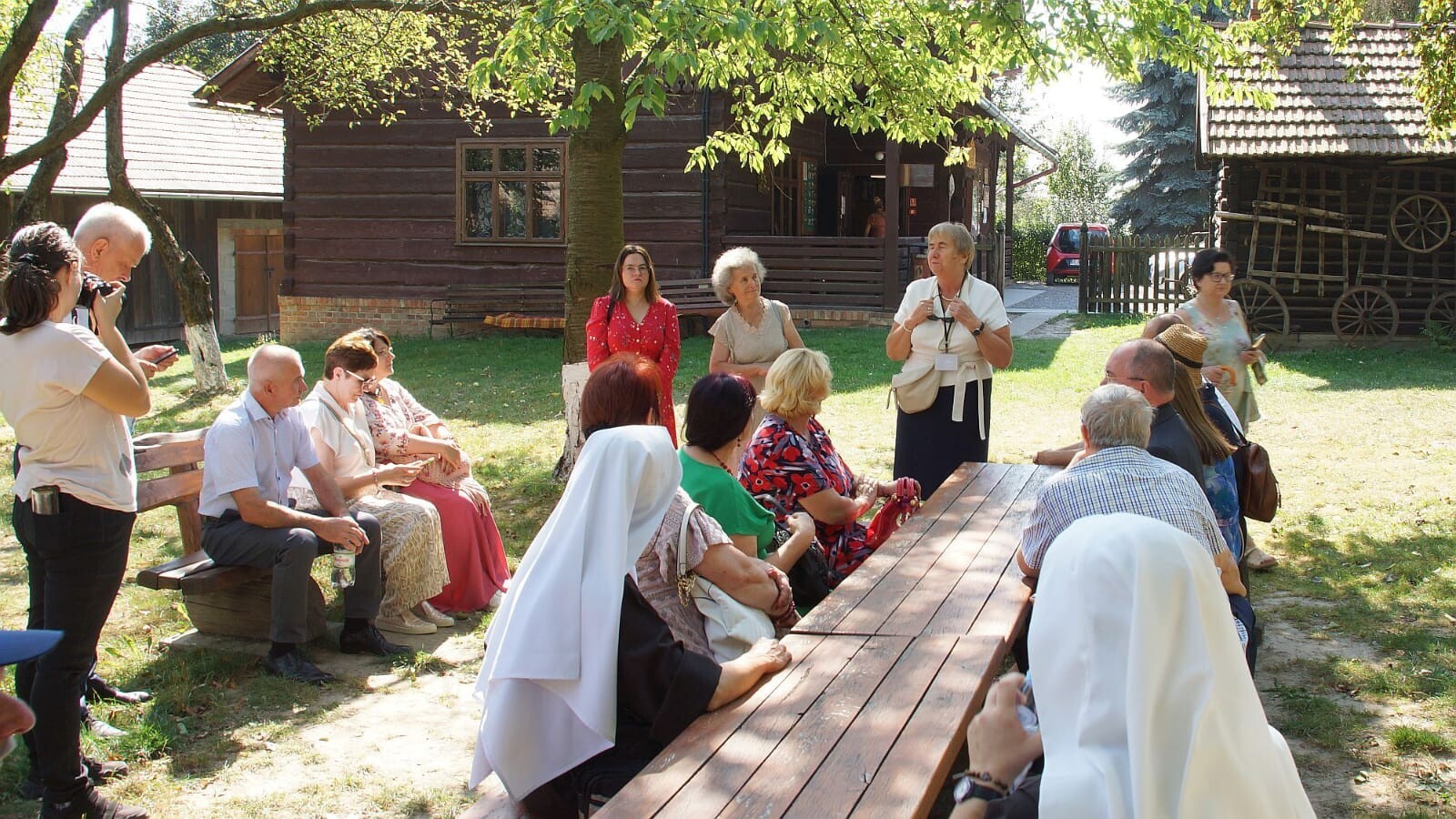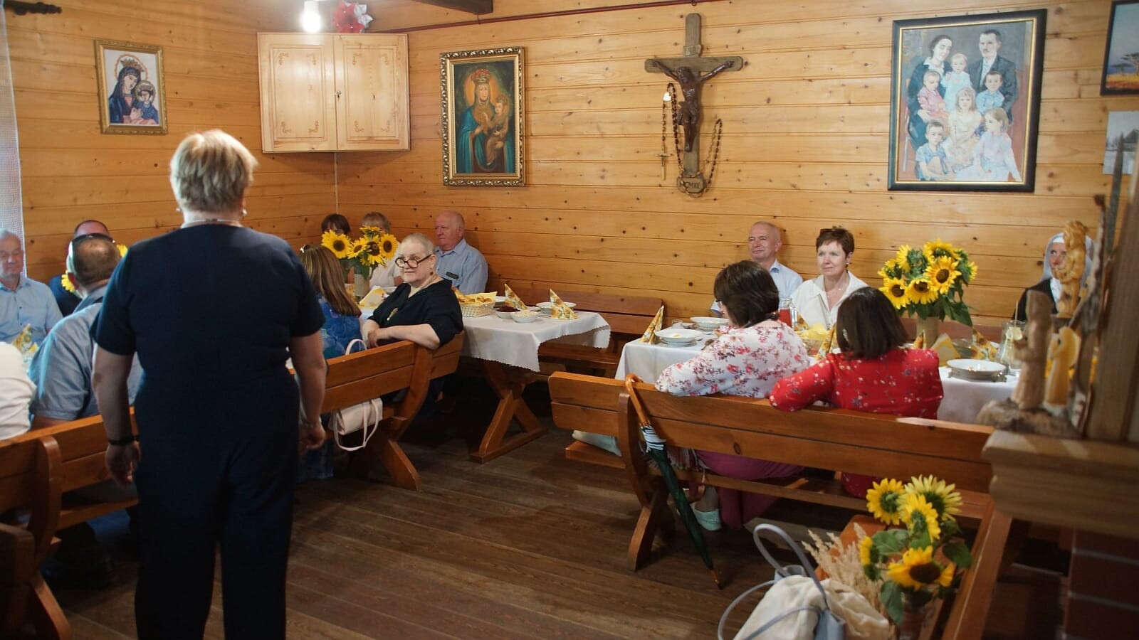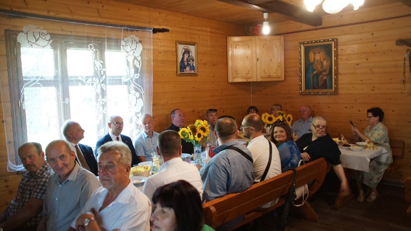Po zakończeniu zwiedzania obu placówek zostaliśmy zaproszeni na obiad, który został poprzedzony wspólną modlitwą. Po pysznym posiłku podczas przerwy kawowej w oczekiwaniu na najważniejszy moment dzisiejszego dnia jakim niewątpliwie było przekazanie naszej wspólnocie relikwii Bł. Rodziny Ulmów poznaliśmy niepublikowane opowieści o naszych patronach, które przekazali nam nasi gospodarze. Natomiast absolwenci LUK AP swoim zaangażowaniem w przygotowanie tej uroczystości dali świadectwo, iż warto podjąć trud w tworzeniu Uniwersytetów Ludowych, ponieważ promują one integrację społeczną i budowanie wspólnoty. Dają również możliwość edukacji osobom z różnych środowisk, często marginalizowanych co pozwala im zdobycie nowych umiejętności i wzmocnienie swojej pozycji społecznej. Mogą działać jako przestrzeń, w której ludzie o różnych doświadczeniach życiowych spotykają się, wymieniają wiedzę i pogłębiają zrozumienie dla siebie nawzajem.