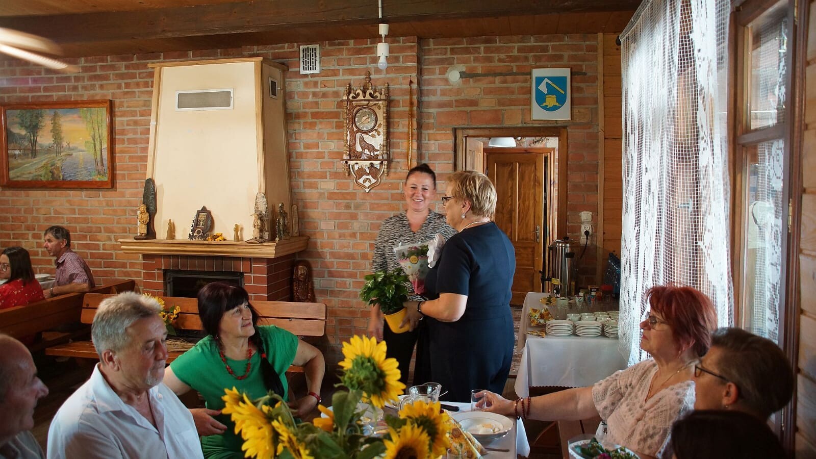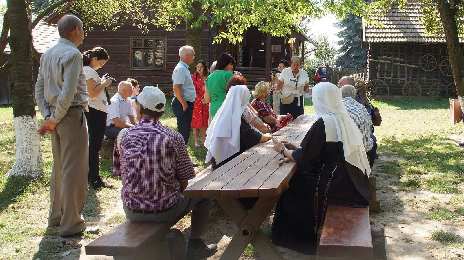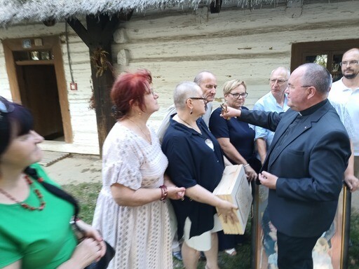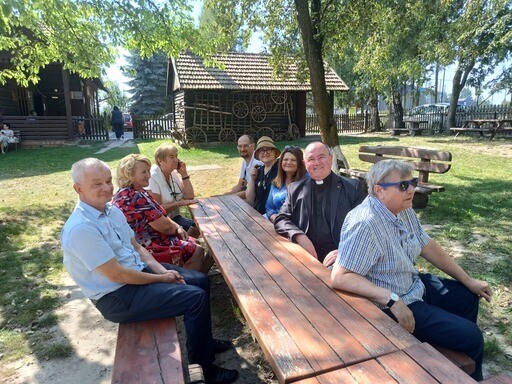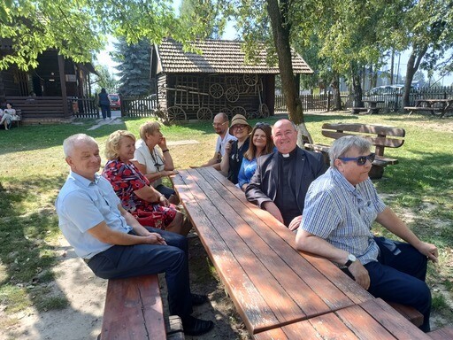 Po zakończeniu zwiedzania obu placówek zostaliśmy zaproszeni na obiad, który został poprzedzony wspólną modlitwą. Po pysznym posiłku podczas przerwy kawowej w oczekiwaniu na najważniejszy moment dzisiejszego dnia jakim niewątpliwie było przekazanie naszej wspólnocie relikwii Bł. Rodziny Ulmów poznaliśmy niepublikowane opowieści o naszych patronach, które przekazali nam nasi gospodarze. Natomiast absolwenci LUK AP swoim zaangażowaniem w przygotowanie tej uroczystości dali świadectwo, iż warto podjąć trud w tworzeniu Uniwersytetów Ludowych, ponieważ promują one integrację społeczną i budowanie wspólnoty. Dają również możliwość edukacji osobom z różnych środowisk, często marginalizowanych co pozwala im zdobycie nowych umiejętności i wzmocnienie swojej pozycji społecznej. Mogą działać jako przestrzeń, w której ludzie o różnych doświadczeniach życiowych spotykają się, wymieniają wiedzę i pogłębiają zrozumienie dla siebie nawzajem.