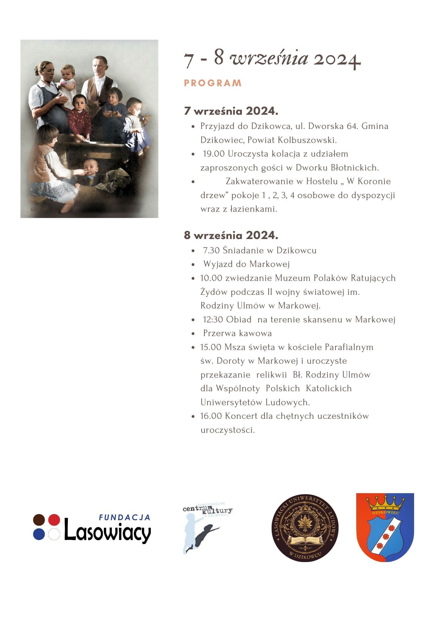 Staraniem Rady Programowej Wspólnoty Polskich Katolickich Uniwersytetów Ludowych 8 września b.r. odbierzemy w Markowej z rąk Abpa Adama Szala relikwie błogosławionej Rodziny Ulmów. Relikwie będą miały swoje stałe miejsce pobytu w kościele p.w. św. Jakuba Apostoła w Łebie ale będzie w miarę potrzeby peregrynować po Uniwersytetach Ludowych należących do WPKUL.